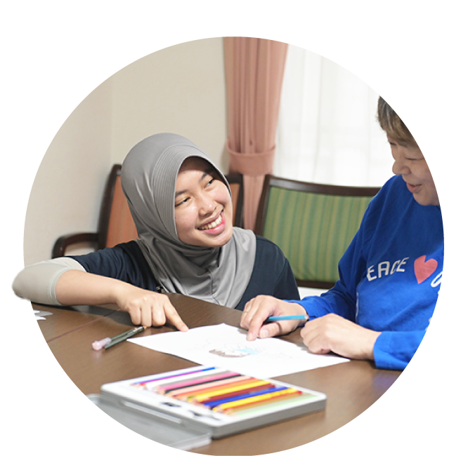 We provide support for the everyday lives of users at facilities for people with disabilities. We support independence and encourage social participation. We respect the individuality and abilities of each person, and provide a sense of fulfillment by supporting them in their own lives.